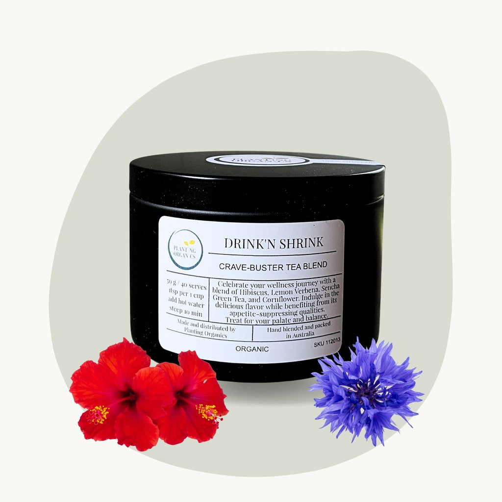 If you’ve been looking for a gentle nudge toward feeling lighter, clearer, and more in control of your cravings, this blend is the one I reach for again and again. Drink’n Shrink brings together four certified organic botanicals—Hibiscus, Lemon Verbena, Sencha Green Tea, and Cornflower—in a vibrant, tangy, refreshing cup designed to complement your everyday wellbeing routine.